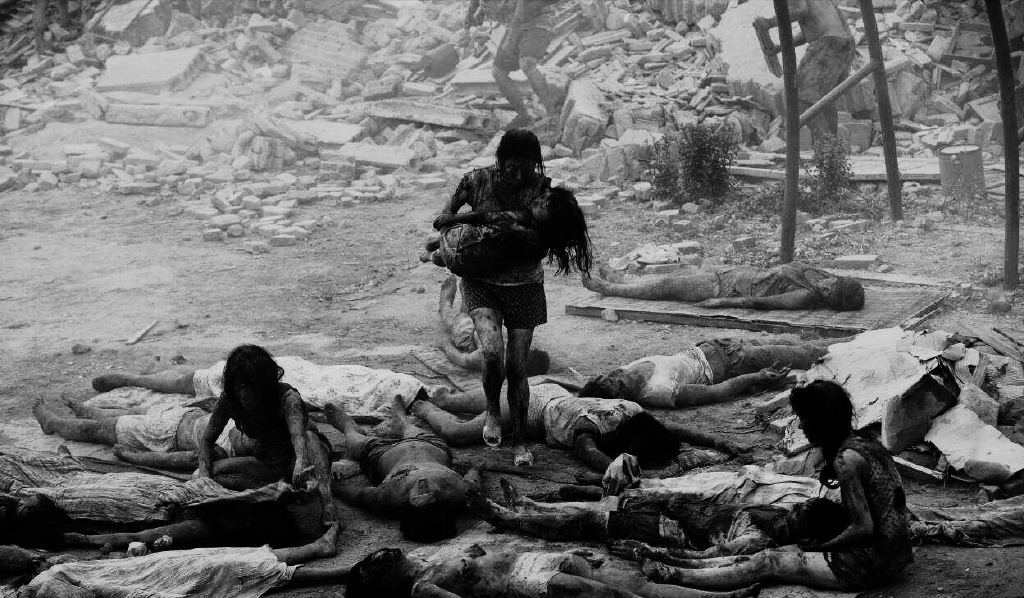随着救援部队的深入,空地上躺了一具又一具尸体。这片领地,好像格外安静,除了救援部队的吆喝声,灾民的脸上没有泪水,也没有呼喊。突然……