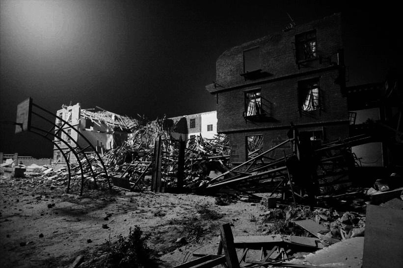 地震结束,那些半夜工作,有幸逃生到空旷地的人们,原来的高楼大厦,现在全都夷为平地,除了开始的震惊,他们开始在废墟里面用双手挖掘,试图掩盖那些压抑的呼救声,试图找到被压在下面的亲人。伤患从废墟中出来,都只能躺在路边,许多的医护人员也被压在了废墟中,医疗中心通往唐山的道路全部被堵住了。