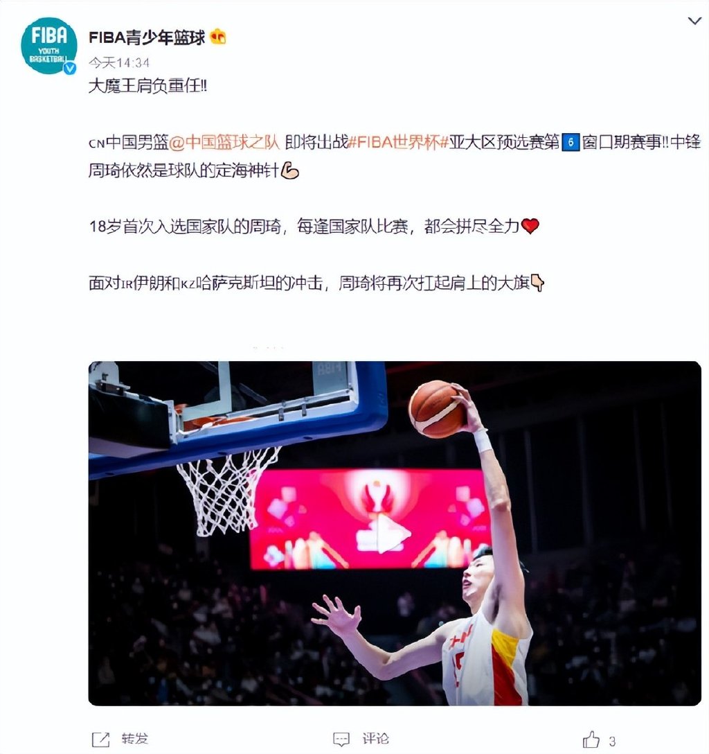 这场比赛之前FIBA大赞周琦是男篮定海神针,还真的没错。上一场男篮也是12分击败哈萨克斯坦,那场比赛周琦8中4拿下19分11篮板3盖帽。