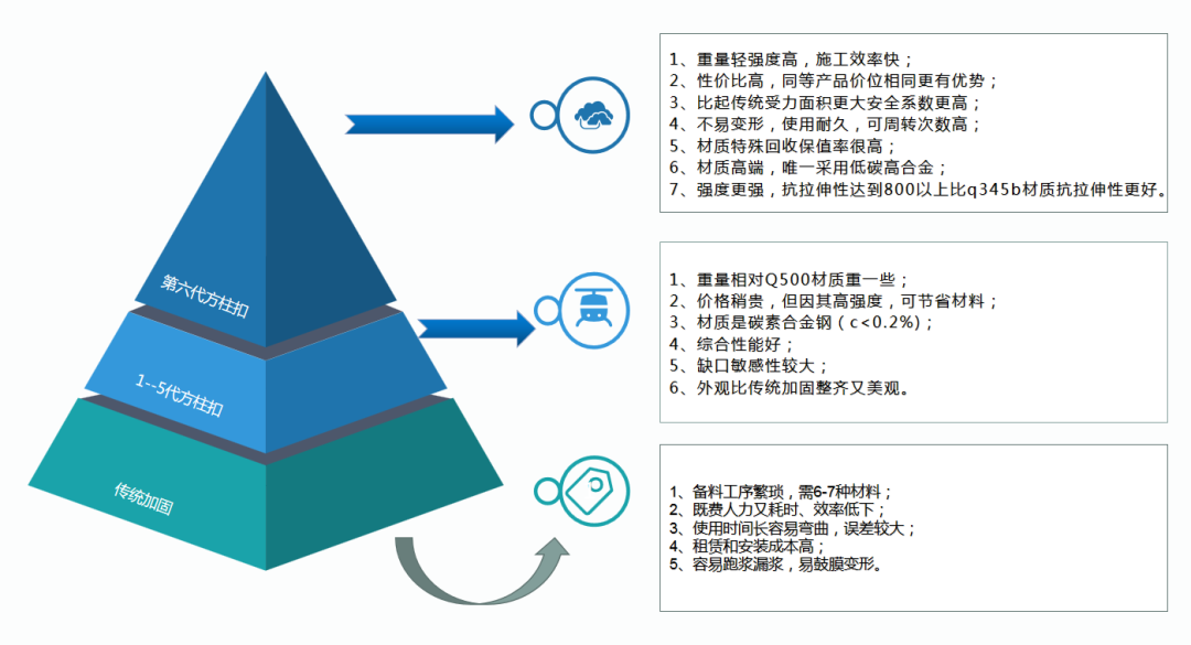 本次研讨会由威海市玉威工程科技有限公司总经理孔欢先生主持并讲解“玉威方柱扣”第六代产品详情。玉威公司第六代方柱扣系列产品,选用德国进口原材料Q500材质,高强度钢材全国首家,低碳高合金材质,强度比原有方柱扣提高45%,重量减轻35%,抗拉伸性更好(抗拉伸性达到800以上比q345b材质强度更高),性价比更高,标准化设计,加工精度高,不易变形,可周转次数高等特性;施工操作更便捷,效率更快,不跑浆不涨膜;比起传统受力面积更大安全系数更高!